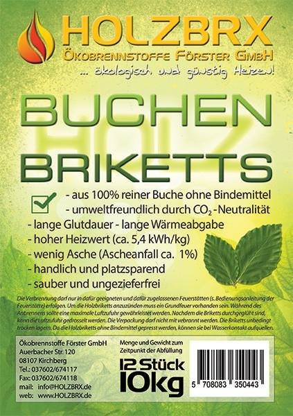 Die Buchenholzbriketts bestehen ausschließlich aus sehr feinen Bestandteilen (Sägemehl und Sägestaub). Aufgrund des ausgesuchtem Materials und wegen der hohen Kompression (300 – 400 bar), sind die Buchenholzbriketts ein sehr sauberes, kompaktes und universell einsetzbares Produkt. Die Verbrennung erfolgt recht gleichmäßig und ruhig. Das Brikett verhält sich dabei recht starr. Es behält sehr schön die Form und glüht langsam und gleichmäßig durch. Sollten Sie nach etwa 1 Stunde Flammdauer das Flammbild vermissen, dann legen Sie einfach ein neues Brikett, etwas Holz oder ein paar Stückchen Nadelholzbriketts nach. Die Buchenholzbriketts sorgen für die Glutdauer. Die Holzbriketts sind zertifiziert nach DINplus (DIN EN ISO 17225-3).